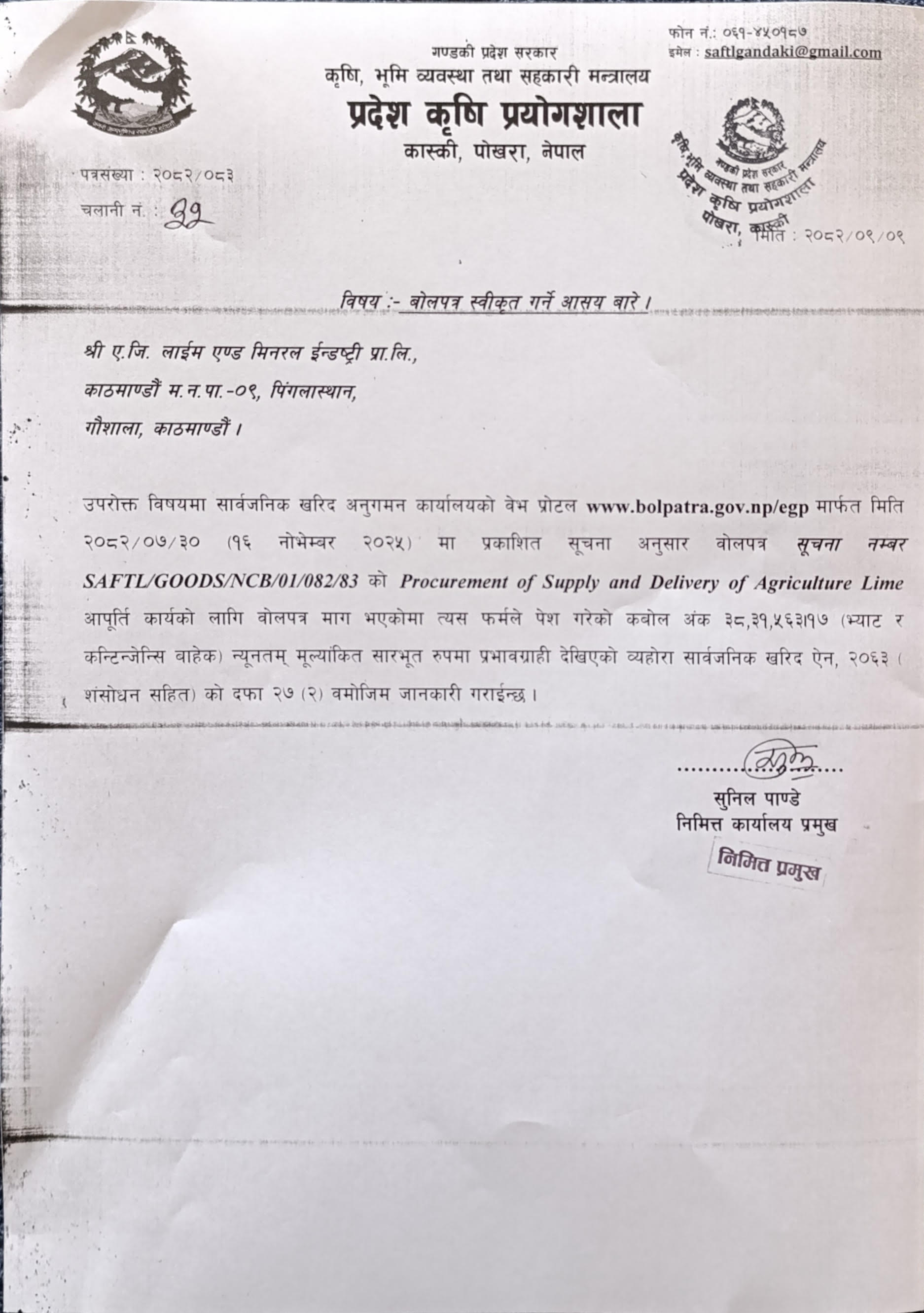 फोन नं.: 0६१-४५०१८७ मोबाइल: ९७७-९८४६४९०२११ इमेल: saftlgandaki@gmail.com